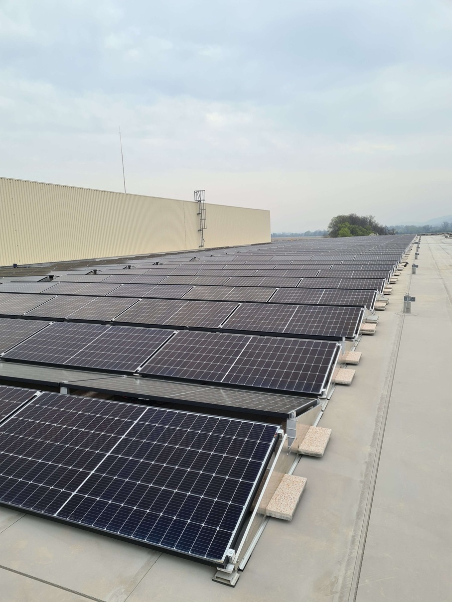 Instalovaný fotovoltaický systém v Českých Budějovicích je tvořený 39 poli fotovoltaických panelů, umístěných na střechách stávajících objektů hal investora. Celkový výkon FVE činí 978,26 kWp je určený pro výrobu el. energie pro vlastní spotřebu. Použito bylo celkem 2386 ks FVP o výkonu 410 Wp.