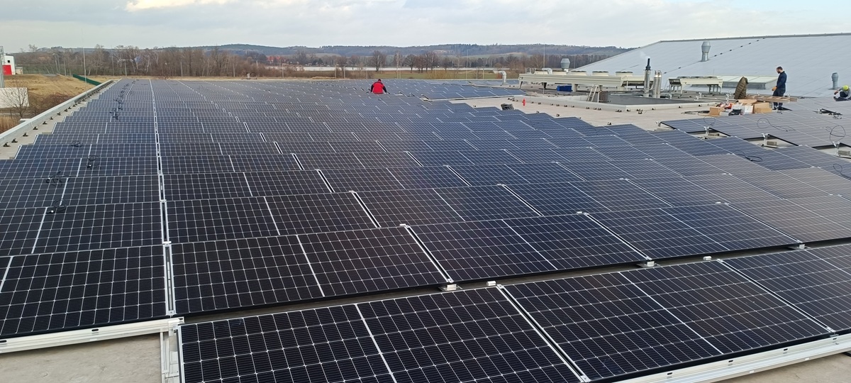 V areálu ve Vsetíně jsme realizovali střešní instalaci fotovoltaiky o výkonu 818,88 kWp na dvou výrobních halách.