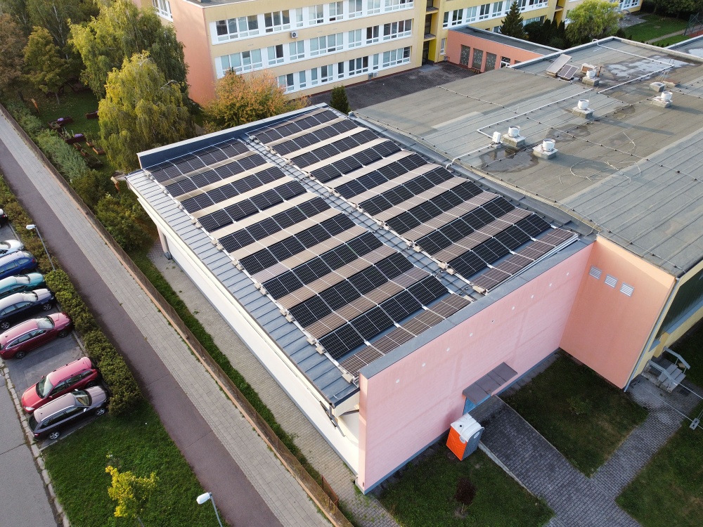 • Fotovoltaického systému o celkovém instalovaném výkonu 62,32 kWp se skládá z 152 ks monokrystalických fotovoltaických panelů, každý o jmenovitém výkonu 410 Wp. FV panely jsou vybaveny výkonovými optimizéry typu SolarEdge P950.