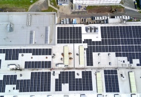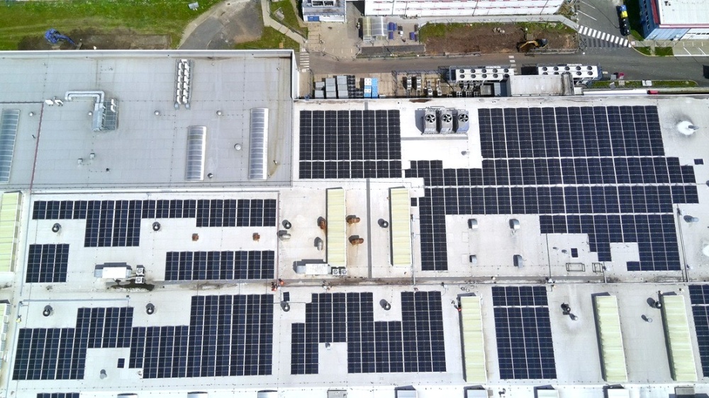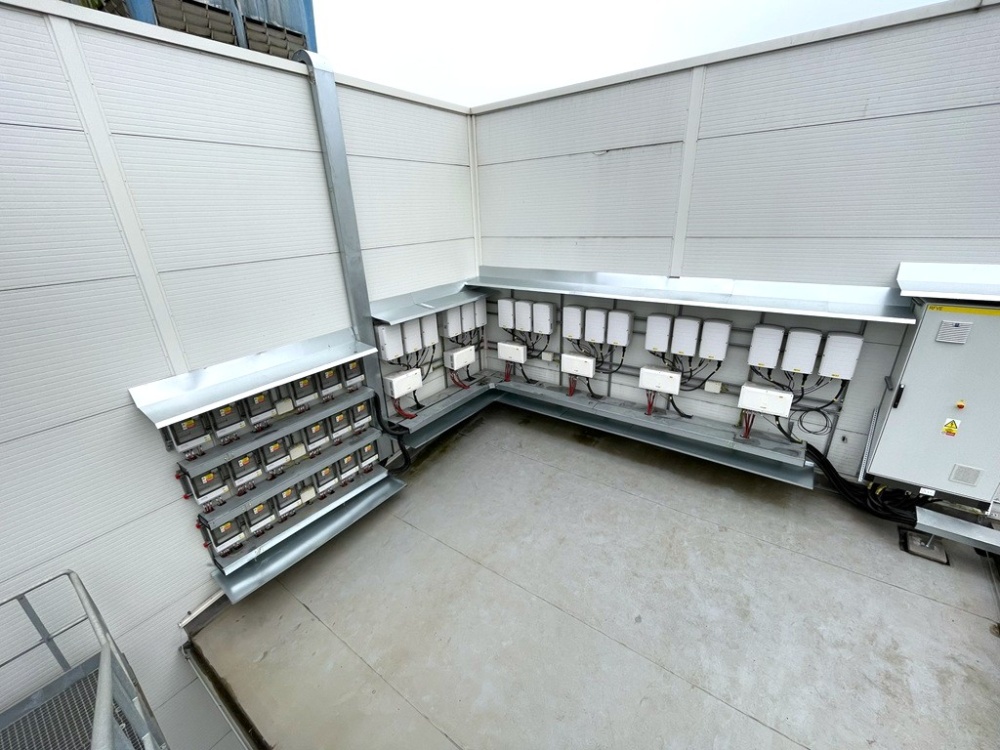 Na střeše jsme instalovali 1 750 panelů s optimizéry a 6 střídačů SolarEdge, doplněných o DC/AC rozvodnice a napojení do přípojného bodu. Zajistili jsme také přeložení hromosvodů a sladili rozmístění panelů s technologiemi klimatizací.