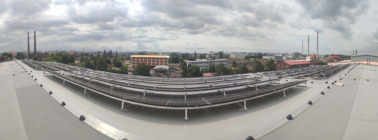 • Fotovoltaické panely v počtu 216 ks o výkonu 460 Wp jsou umístěny na střeše budovy. Celkový výkon FV panelů je 99,36 kWp. FV panely jsou osazeny na hliníkové konstrukci na sedlové střeše s krytinou z trapézového plechu orientace na jihozápad. Součástí výstavby je bateriové úložiště s kapacitou 104 kWh