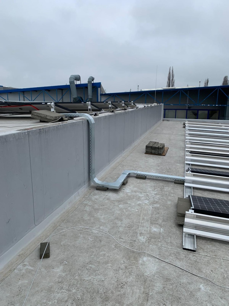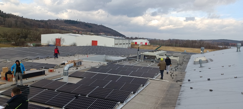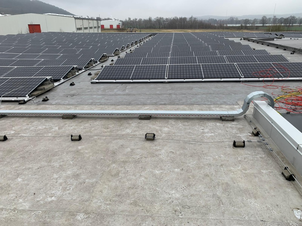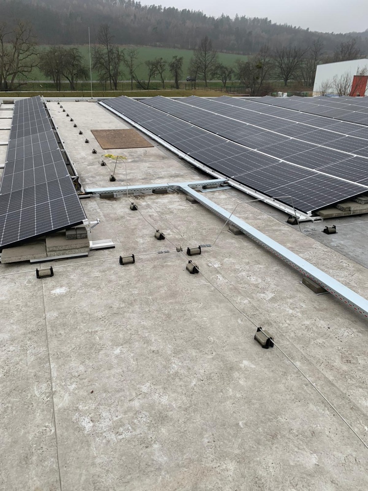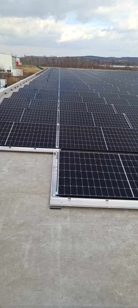 • Místo realizace FVE : Krnov. Výkon 218 kWp, kapacita bateriového systému 216 kWh, celkový počet střech - 1, celkový počet panelů AEG  455 Wp - 480 ks, měniče a optimizéry SolarEdge,  konstrukce  Novotegra samozátě  - jih. projekt vč. úpravy jimací hromosvodové soustavy, s výstavbou nového techgnologického kontejneru k umístění technologie (bateriový systém, měniče). Součástí projektu je rovněž stavební část - výkop, pokládka chrániček a kabeláže k technologikcému kontejneru, vč. výstavby uložení kontejneru.