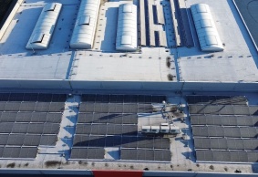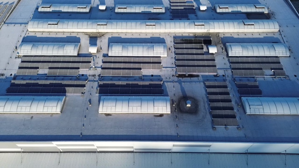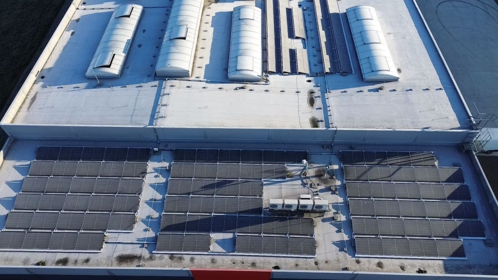 • Elektrárna byla tvořena celkem 217 ks fotovoltaických panelů, o výkonu 460 Wp, celkový instalovaný výkon fotovoltaického systému činí 99,82 kWp. FV panely jsou připevněny k samonosné konstrukci se sklonem 13°. Konstrukce na střeše je provedena s ohledem na zajištění mechanické stability zejména proti působení větru. Na střeše je 87 ks panelů, které jsou orientovány na jihozápad. Zbylých 130 panelů jsou orientovány na jihovýchod.