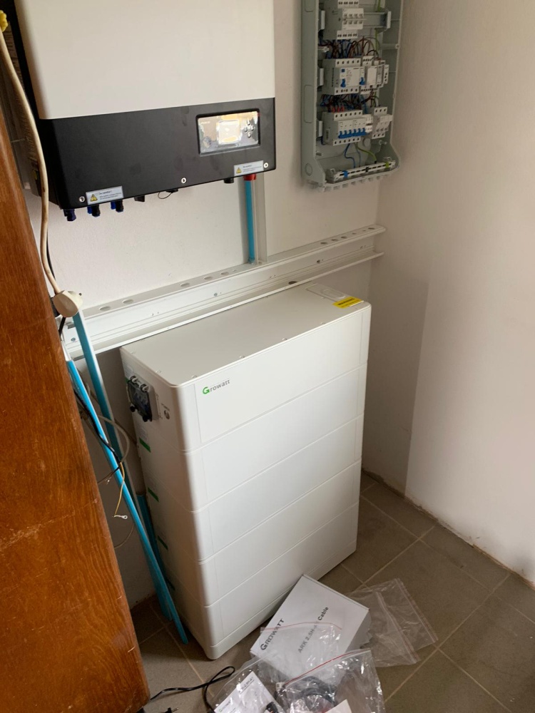 Výkon FVE 8,19 kWp, baterie 10,24 kWh, střídač GROWATT SPH10000TL3, FV panely -18 ks Ja SOLAR 455 Wp, Growatt Groboost – přetoky do vody