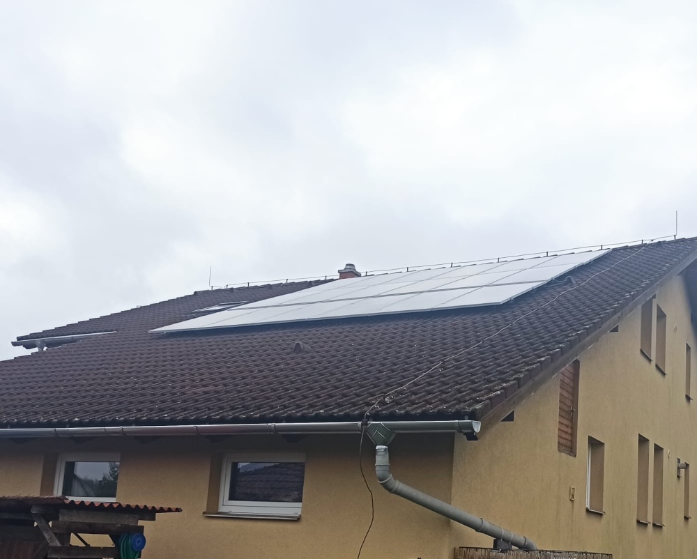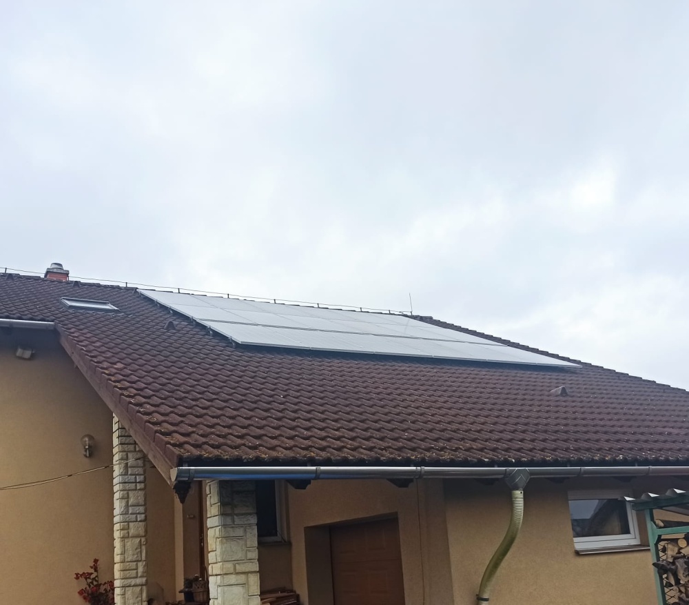 Jednoduchá, standartní instalace FVE na šikmou střechu s orientací na JIH s požadavkem na využití přetoků do vody