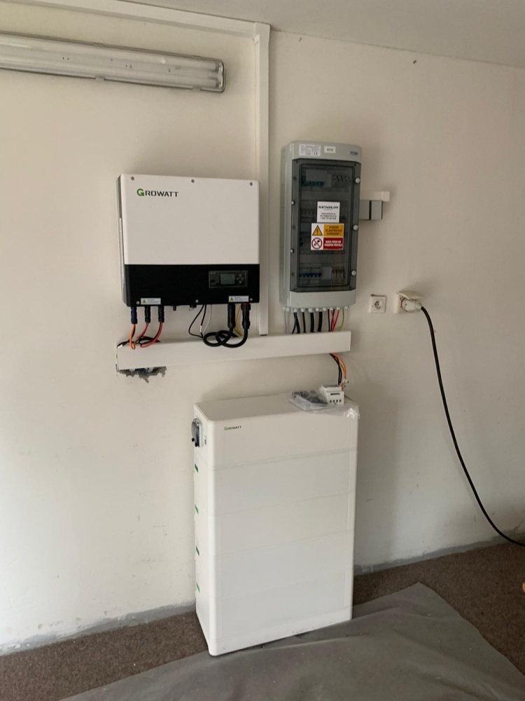 • Výkon FVE 9,56 kWp, baterie 10,24 kWh, střídač GROWATT SPH10000TL3, FV panely -21 ks Ja SOLAR 455 Wp, Growatt Groboost – přetoky do vody