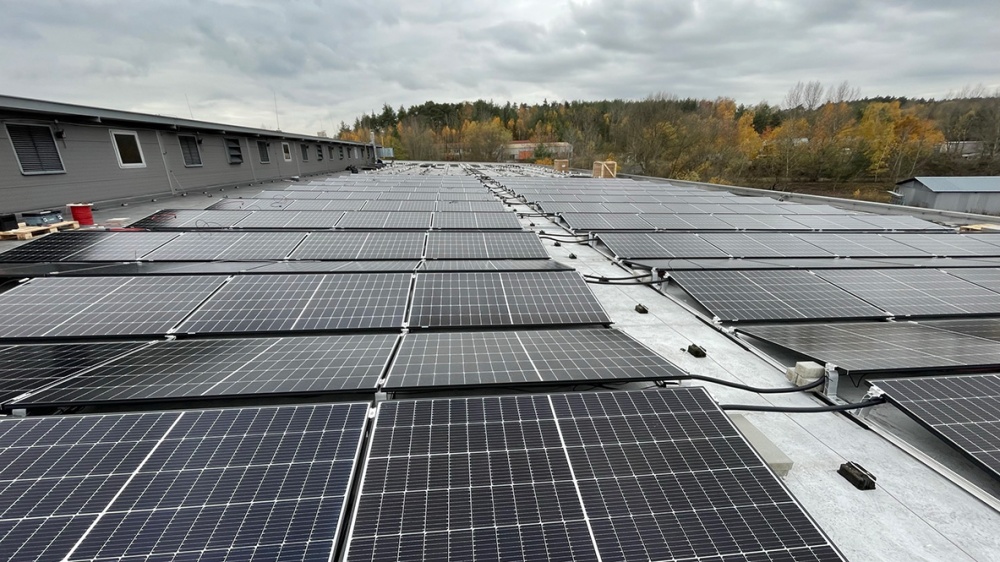 • Instalovaný fotovoltaický systém na dvou objektech investora. Objekt Poříčany je elektrárna na střeše objektu tvořena celkem 1384 ks fotovoltaických panelů, o výkonu 460 Wp, celkový instalovaný výkon fotovoltaického systému činí 636,64 kWp , na roznášecí konstrukci. Objekt Mimoň je elektrárna na střeše objektu tvořena celkem 896 ks fotovoltaických panelů, o výkonu 460 Wp, celkový instalovaný výkon fotovoltaického systému činí 412,16 kWp, panely jsou instalovány na dvou střechách.