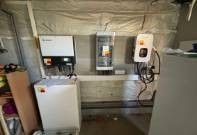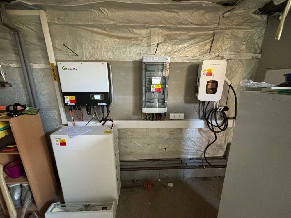 • Výkon FVE  7,40 kWp, Střídač SPH 8000 TL3, bateriové úložiště 10,24 kWh, optimizéry  Tigo 6 ks a autonabíječka.
