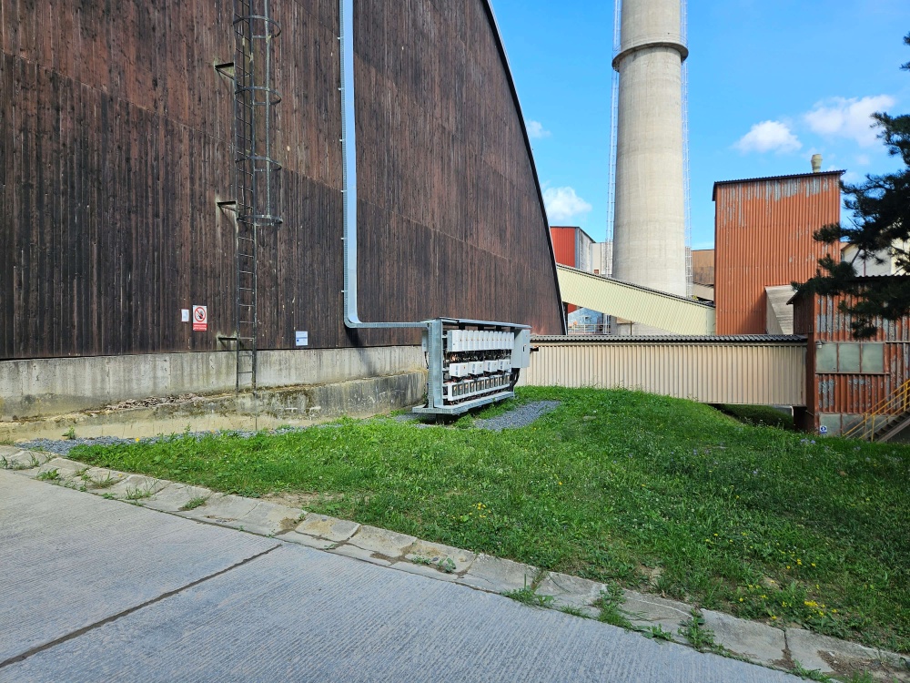 Fotovoltaický systém je instalován obloukové střeše skladovací haly. Panely jsou umístěny na speciální kotvené konstrukci, kdy na jižní části fotovoltaické panely kopírují sklon střešní roviny a na severní části směřují na východ - západ. Součástí plnění je rovněž dodávka nové hromosvodové soustavy, provedené izolovanými vysokonapěťovými vodiči.
