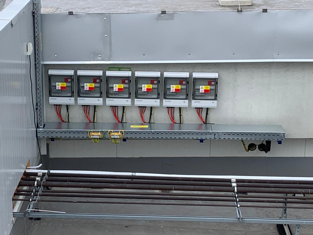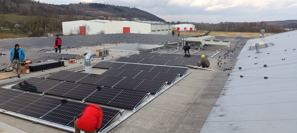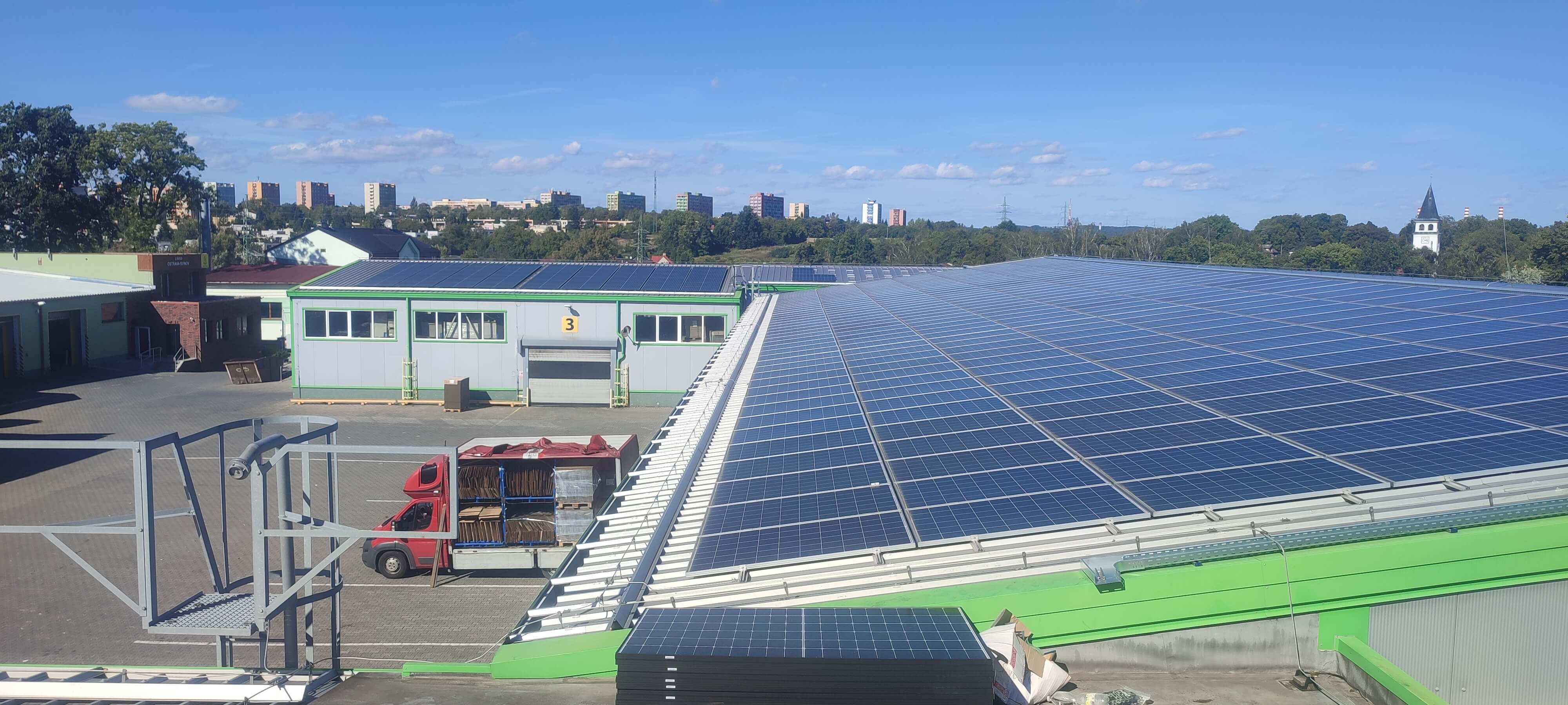 • Místo realizace FVE : Krnov. Výkon 218 kWp, kapacita bateriového systému 216 kWh, celkový počet střech - 1, celkový počet panelů AEG  455 Wp - 480 ks, měniče a optimizéry SolarEdge,  konstrukce  Novotegra samozátě  - jih. projekt vč. úpravy jimací hromosvodové soustavy, s výstavbou nového techgnologického kontejneru k umístění technologie (bateriový systém, měniče). Součástí projektu je rovněž stavební část - výkop, pokládka chrániček a kabeláže k technologikcému kontejneru, vč. výstavby uložení kontejneru.