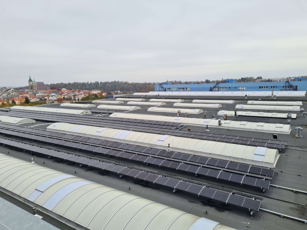 • Výrobna byla instalována primáně za účelem snížení energetické náročnosti objektu. Orientace panelů na východ a západ zajistí postupnou výrobu v průběhu celého dne. odběrové špičky areálu, byl k FVE instalován i bateriový systém.