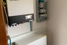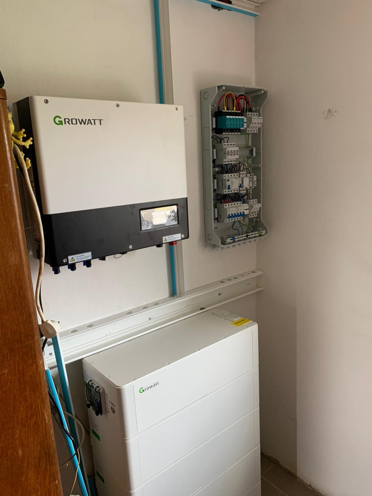 Výkon FVE 8,19 kWp, baterie 10,24 kWh, střídač GROWATT SPH10000TL3, FV panely -18 ks Ja SOLAR 455 Wp, Growatt Groboost – přetoky do vody