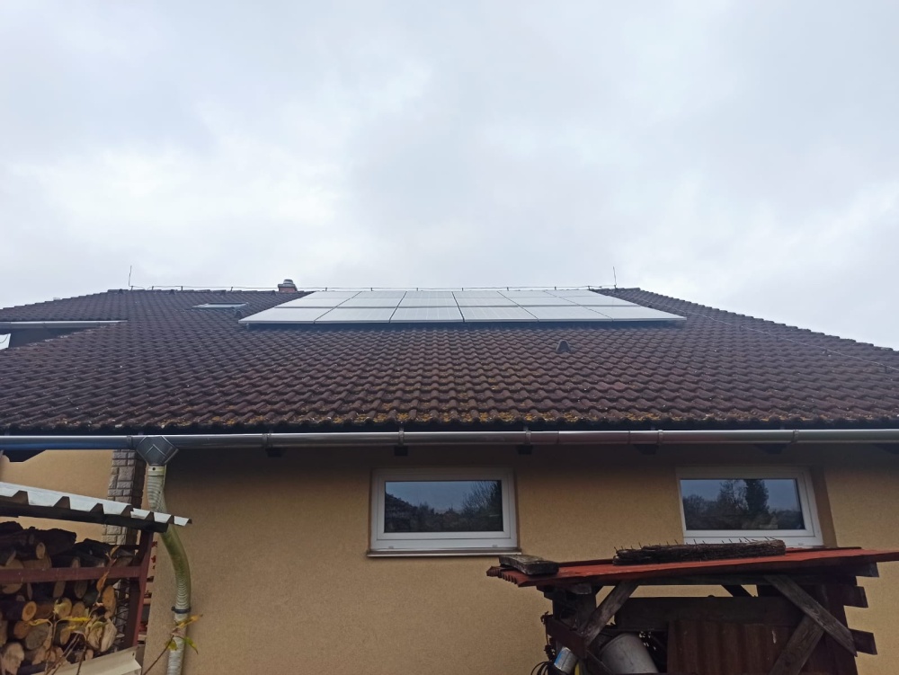 Jednoduchá, standartní instalace FVE na šikmou střechu s orientací na JIH s požadavkem na využití přetoků do vody