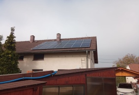 • Podle přání zákazníka na maximální výkon FVE byla provedena montáž FV panelů na 2 samostatné střechy (RD a garáž) – propojení stringů a umístění technologie bylo realizováno v garáži