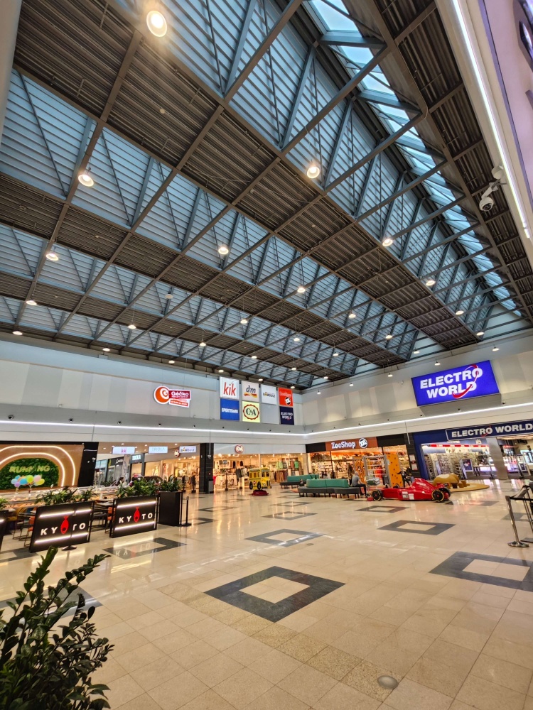 Požadavkem investora byla jednoznačná úspora nákladů na osvětlení nákupního centra v pasážích a zázemí. Byl vytvořen projekt osvětlení včetně světelně technických výpočtů. Na základě toho proběhla kompletní výměna starého osětlení za nové moderní led úsporné osvětlení. Součástí toho bylo také nahrazení venkovního osvětlení a to pomocí úsporného led osvětlení BUBU.